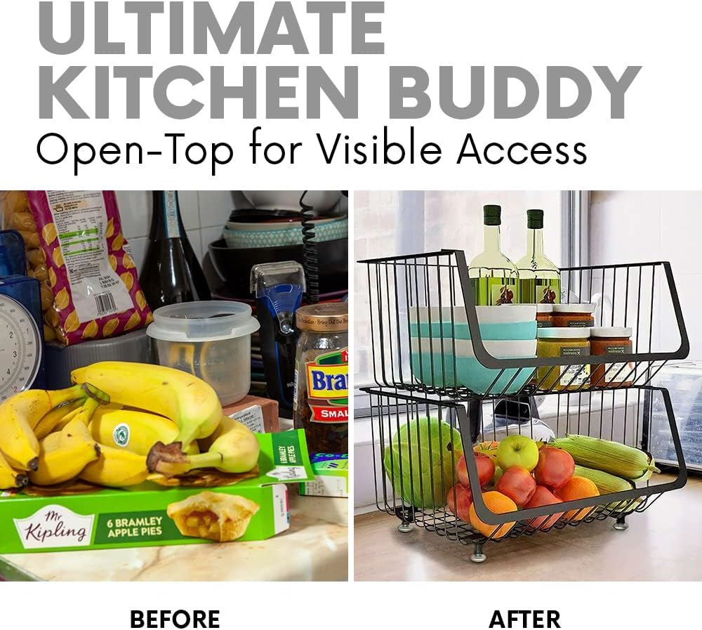 4-Tier Utility Rolling Cart - Metal Black Basket, Storage Organizer for Pantry,