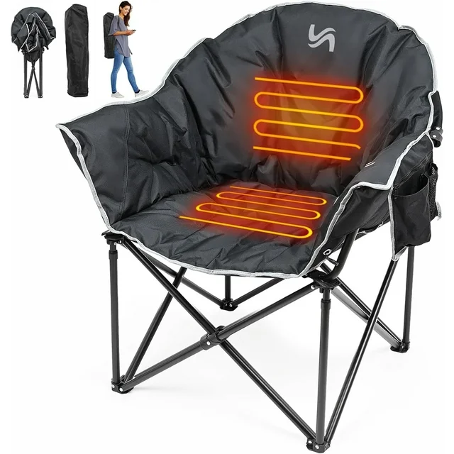 Heated Camping Chair: The Heated Camping Chair features USB-powered heating technology ( battery not included). Provides the ultimate warmth and comfort for your body in cold weather, keeping you warm and comfortable at any outdoor sports, beach, lawn, picnic activities. The spacious seat, backrest, and armrests are made with ultra-soft luxurious padding for maximum comfort. Works with any USB battery pack ( battery not included) and lasts for hours. Simply plug the USB cable into the USB Port of your battery and warming up your portable camp chair.