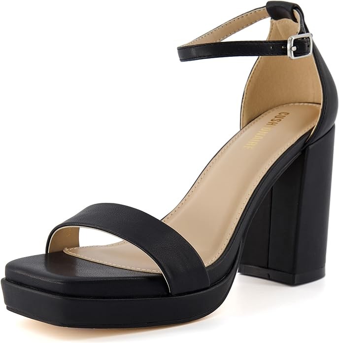 CUSHIONAIRE Women's Grammy one band block heel platform sandal +Memory Foam, Wide Widths Available