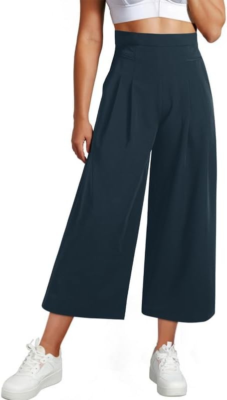 Dokotoo Womens Wide Leg Cropped Suit Pants Work Business Palazzo Summer Pleated Waisted Side Zipper Up Trousers with Pockets