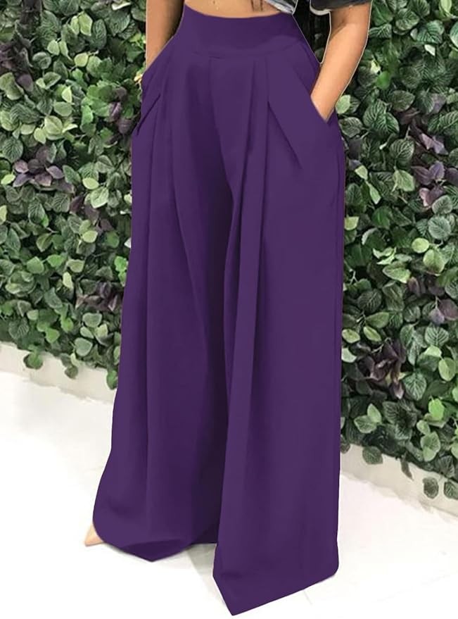 EQQZD Palazzo Pants for Women Flowy Wide Leg High Waisted Trousers Long Dressy Bottoms