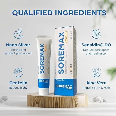 FAMAXPHARMA Scar Gel Heal Fast, Centella Aloe Vera Nano Silver Sensidin® DO, & Skin Repair, Paraben Free, Reduce Burn Itchy Rashes Dark Spots Acnes, Soremax Nature