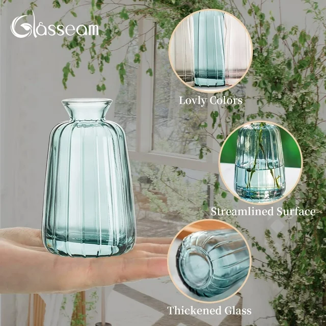 Whether your style is modern or antique, these small glass flower vases for centerpieces can fit any type of core decorations of wedding, dining table decorations, etc.