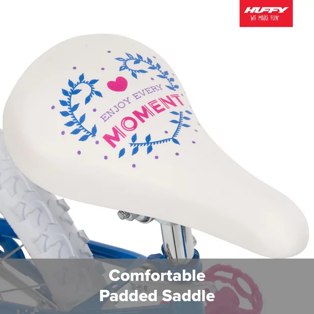 20-inch Girls' Bike with Huffy® EZ Build™   Get ready for exciting childhood memories to begin as soon as this 20" Sea Star EZ Build Bike arrives at your door. This girls' bicycle features a great metallic frame with eye-catching blue and pink colors and heart shapes across the partially enclosed chainguard, durable steel frame, and comfortably padded seat. Hot Pink wheel rims and a coordinating crossbar pad complete the overall style. This 20-inch bike has an adorable look with great features! With Huffy EZ Build, only from Huffy, this bike has quick and easy assembly with no tools required. A few short steps to assemble and your child will be grinning ear to ear when she rides this bicycle. This single-speed bike has an easy-to-use coaster brake for quick and efficient stopping. An alloy quick-release lever makes it easy to adjust the seat to the right height. This seat is padded to make sure every ride is comfortable. Plus, this bike features sparkly streamers that glisten in the wind as she rides! To see other Huffy products for kids in action, visit our YouTube channel!For more Huffy Content, visit our Instagram Page! To see how a Huffy EZ Build Bike is assembled, click here!