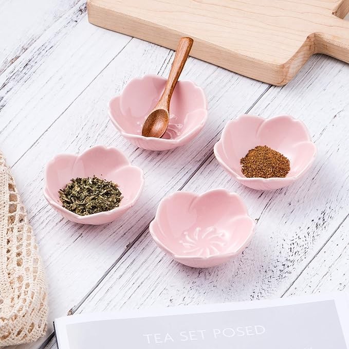 Jusalpha Pink Cherry Blossom Porcelain Sauce/Seasoning Dish, Sushi Soy Dipping Bowl, Dessert , Appetizer Plates, Serving Dish for Kitchen Home (Set of 4, Pink)