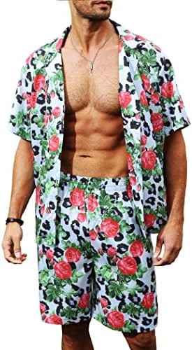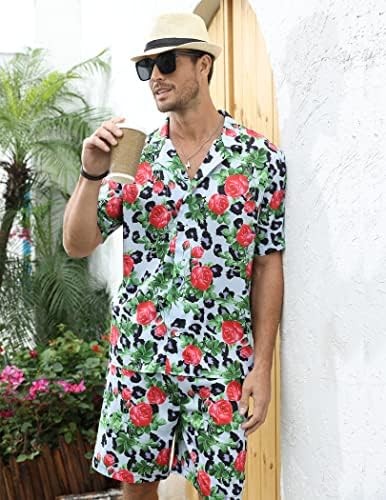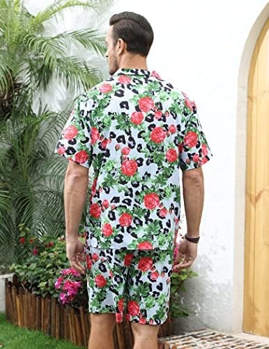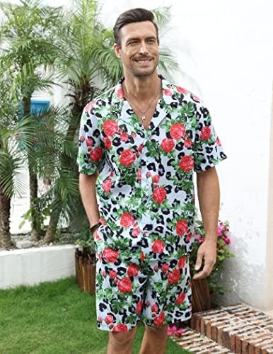 LUCKYOUNG Men's Hawaiian Shirt and Short Set 2 Piece Short Sleeve Button Down Shirt Beach Vacation Outfits for Men Suit Sets